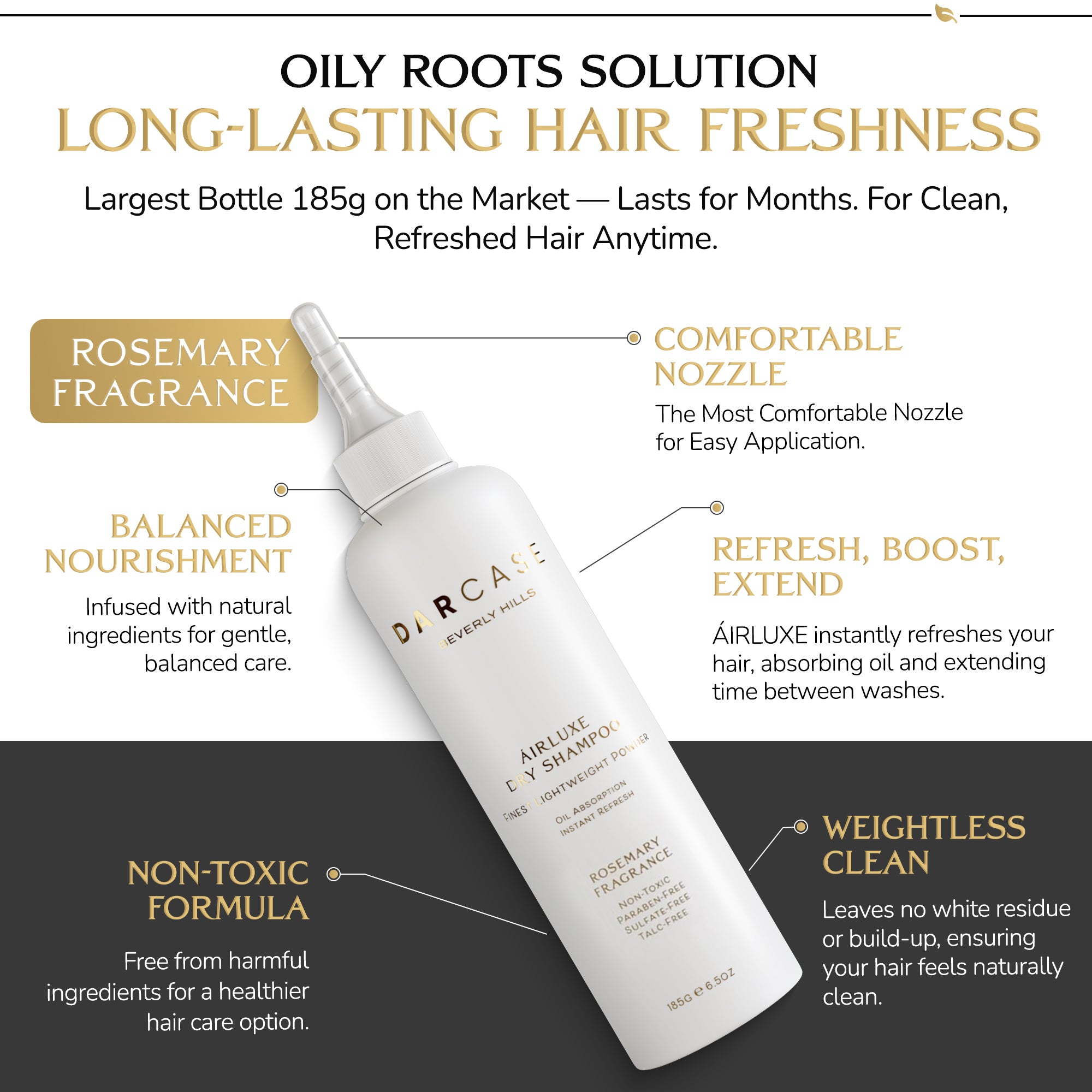 Refresh, Boost, Extend – ÁIRLUXE instantly refreshes your hair, absorbing oil and extending time between washes. Say goodbye to greasy roots and hello to effortless confidence.
